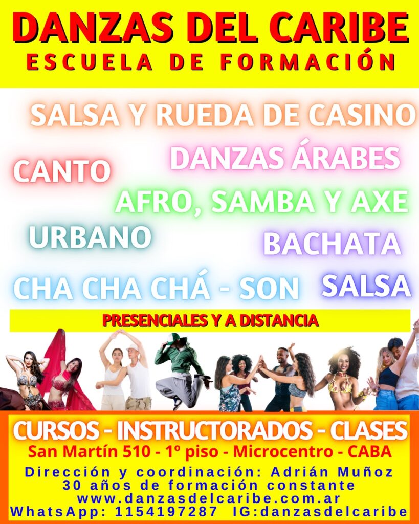 Te cuento que la primera versión de Danzas del Caribe se subió a la internet el 1 de Octubre de 2001. En esta web encontraras información de cursos, capacitaciones y clases vinculadas con los ritmos, bailes y estilos cadenciosos del caribe y también eventos y secciones de información útil acerca del mundo de la danza, arte y movimiento. Te invito a que nos visites periódicamente para ir conociendo todas las secciones, informarte de nuestros cursos y saber mas del baile, las artes escénicas vinculadas, del movimiento del cuerpo y de todos los beneficios que obtenemos a partir del ritmo, del encuentro, de bailar y de hacer lo que nos gusta.